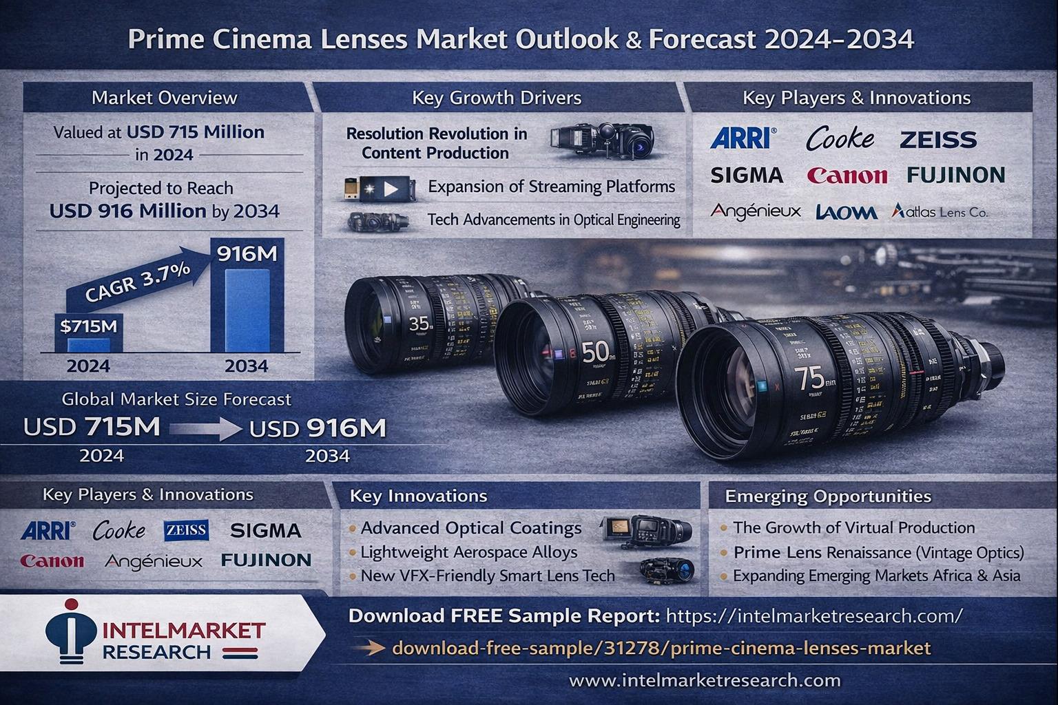 According to a new report from Intel Market Research, Global Prime Cinema Lenses market was valued at USD 715 million in 2026 and is projected to reach USD 916 million by 2034, growing at a steady CAGR of 3.7% during the forecast period. This growth is propelled by the booming demand for high-resolution content production, expansion of streaming platforms, and technological advancements in optical engineering for cinematic applications.