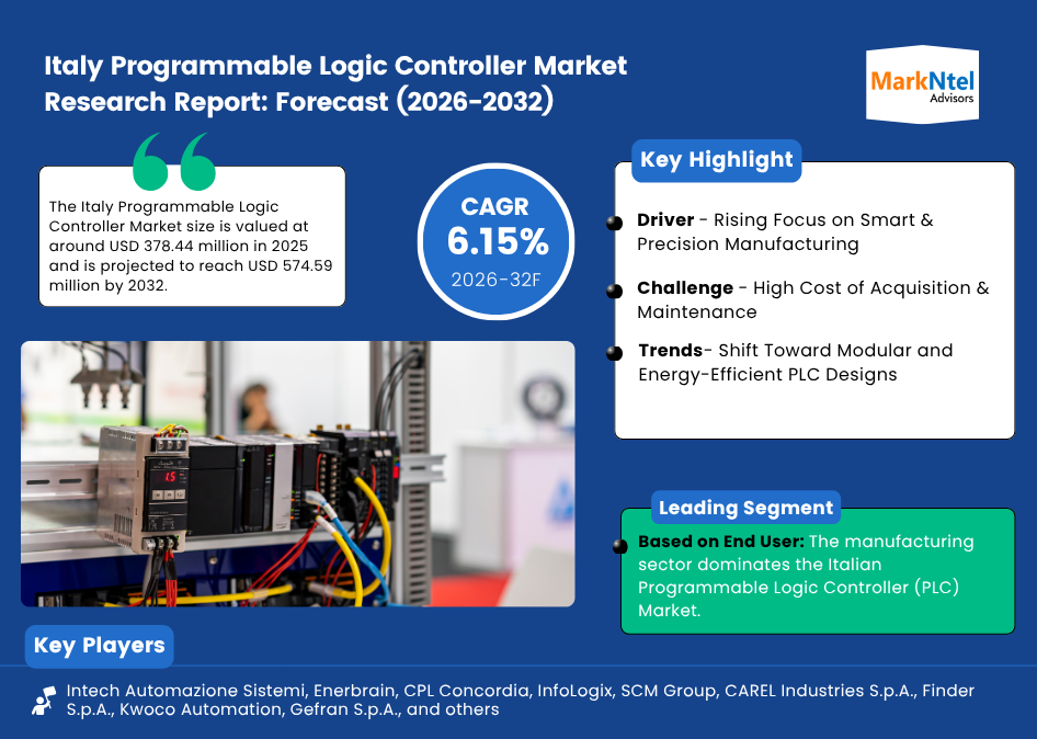 MarkNtel Advisors, a leading market research and consulting firm, has announced the release of its latest study titled Italy Programmable Logic Controller Market Research Report: Forecast (2026–2032). This report provides a detailed assessment of the Italy Programmable Logic Controller Market, covering its evolving dynamics, emerging trends, key growth drivers, major challenges, and competitive landscape.