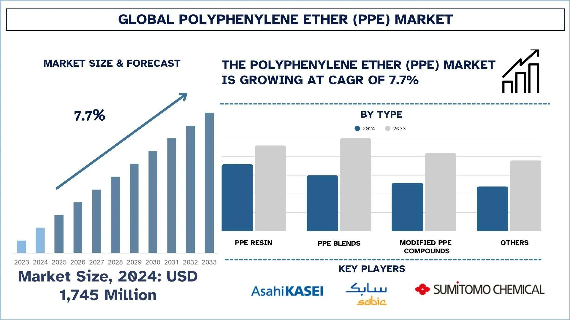 According to a new report by UnivDatos, The Polyphenylene Ether (PPE) Market is expected to reach USD million in 2033 by growing at a CAGR of 7.7%. The Polyphenylene Ether (PPE) market is expanding because of its increasing application in the automotive, electronic, and industrial sectors due to the need to have lightweight, durable, and heat-resistant materials. Excellent mechanical strength, dimensional stability, electrical insulation properties, and other characteristics of PPE also enable it to be used in components of electric vehicles, consumer electronics, and high-performance equipment. Also, the international trend of energy efficiency and sustainability is increasing the use of PPE since it facilitates the replacement of metals and enhances fuel efficiency. The ongoing technological developments, increased end-user industries, and increasing demand for high-performance plastics in the emerging economies are also contributing to the consistent growth of the market.